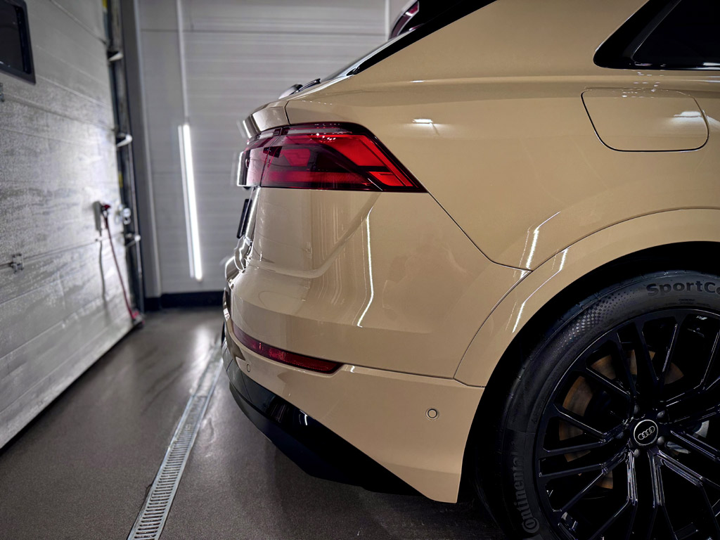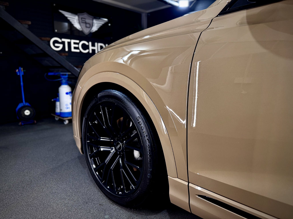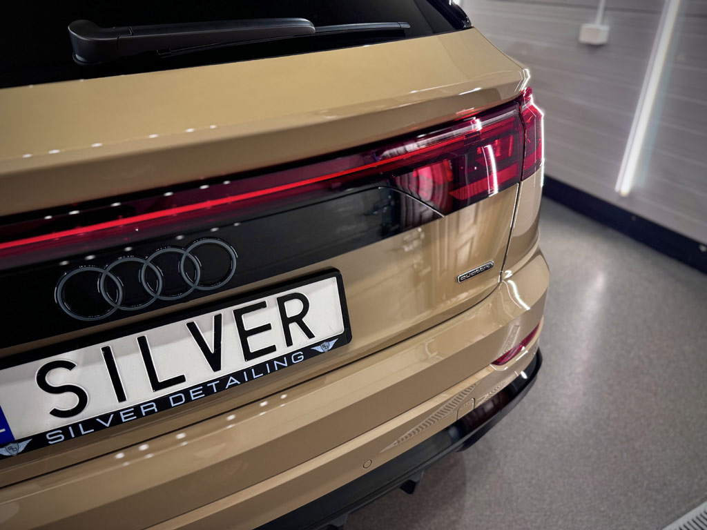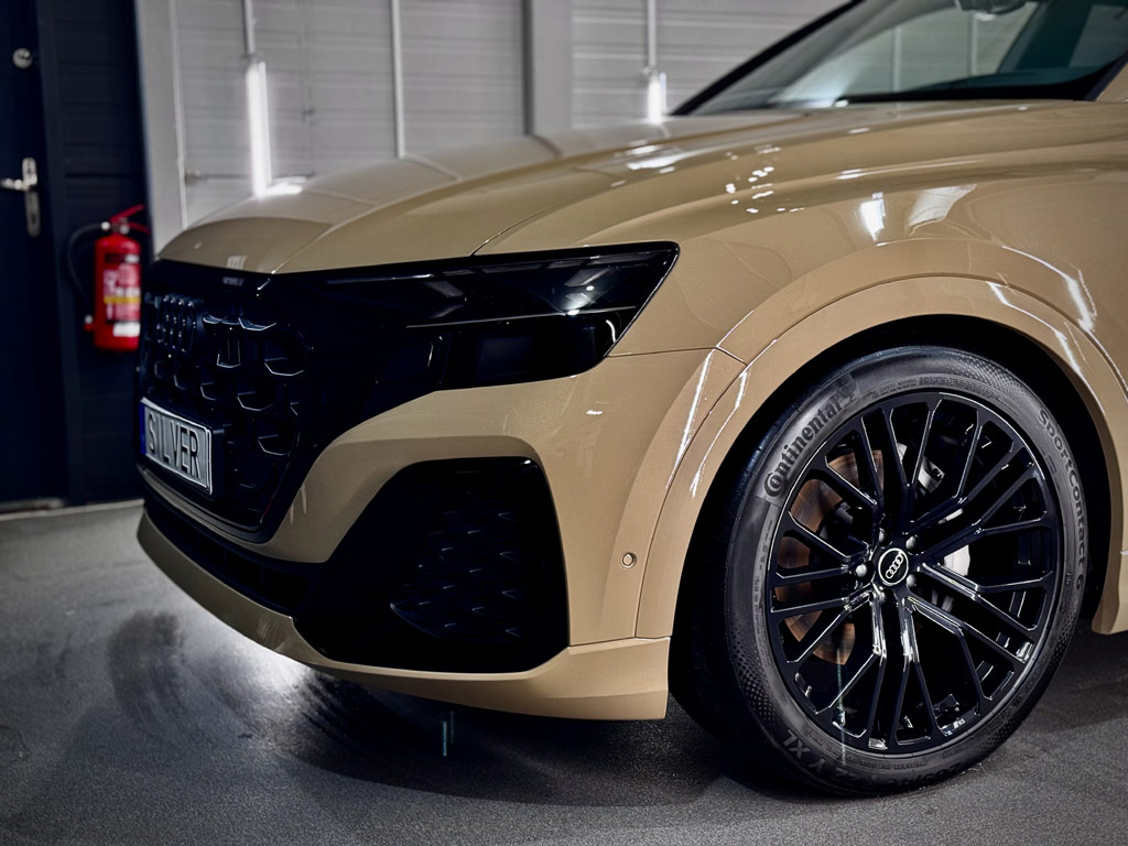 Audi Q8 po kompleksowym zabezpieczeniu w Silver Detailing. Folia PPF i powłoka ceramiczna Gtechniq CSL
